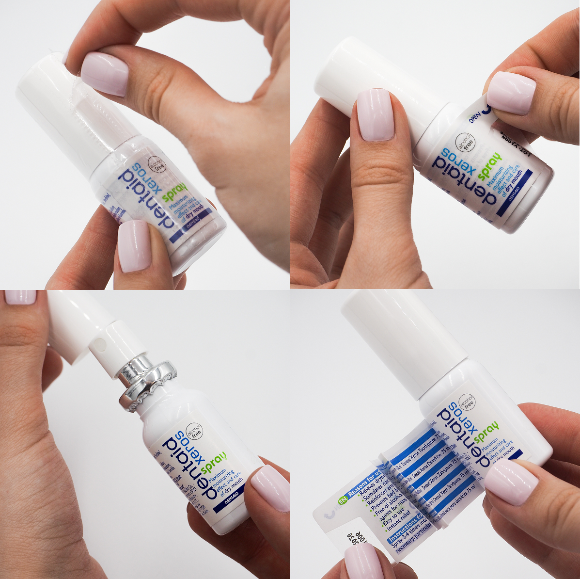 Спрей Xeros можно использовать в течение дня так часто, как это необходимо, производя 2-3 впрыска в полость рта. Для достижения максимального эффекта рекомендуется использовать спрей в совместно с зубной пастой, гелем и ополаскивателем для полости рта DENTAID® Xeros.