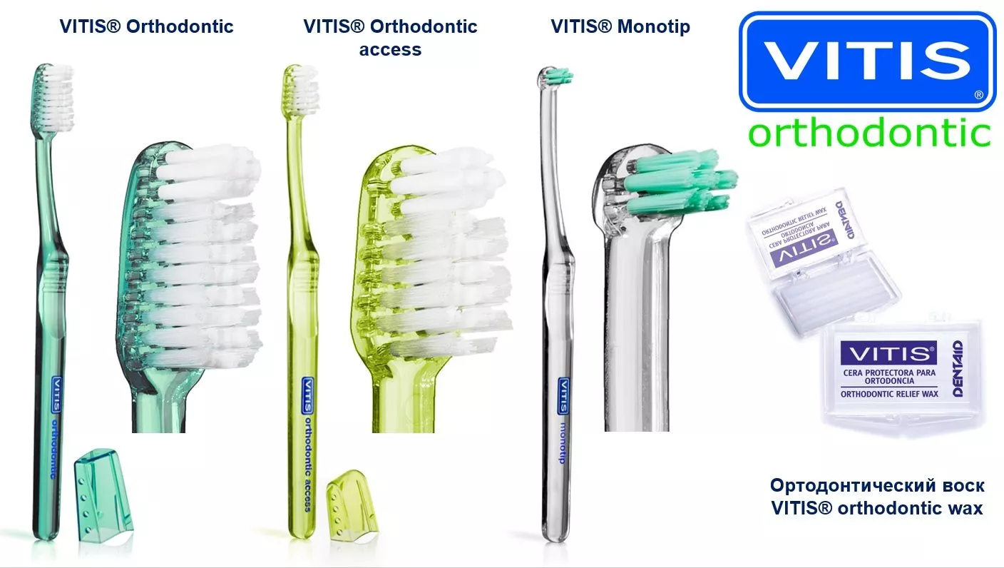 Зубные щетки VITIS® Orthodontic, VITIS® Orthodontic Access, VITIS® Monotip, средней жесткости.