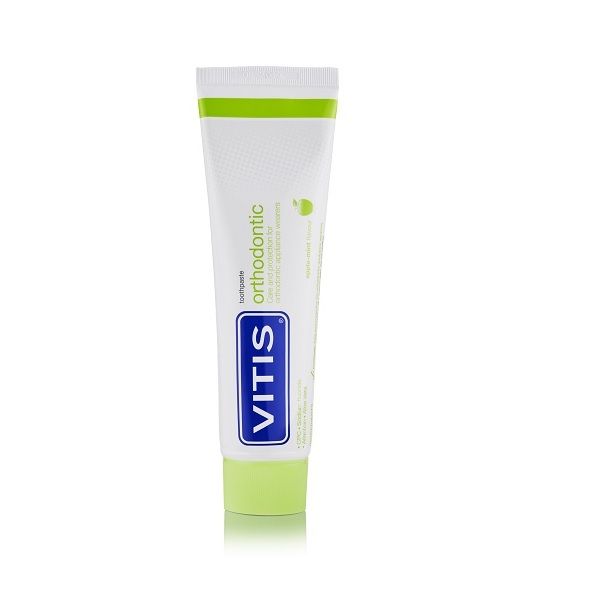 Зубная паста VITIS® Orthodontic для пациентов с несъемными ортодонтическими и ортопедическими конструкциями (брекеты, пластины, мосты и пр.) со фтором.